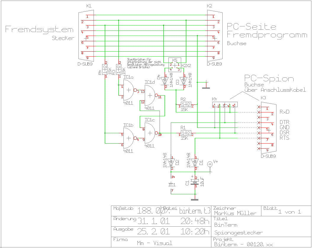 Die Spannungsversorgung wird von der seriellen Schnittstelle des spionierenden